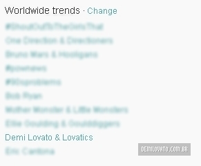 Hoje (09/01) entrou duas tags para Demi Lovato no Trending Topics do Twitter (assuntos mais falados do momento). Uma das tags foram pedido de uma parceria de Demi Lovato com a cantora Avril Lavigne. Veja a tag nos trends abaixo: